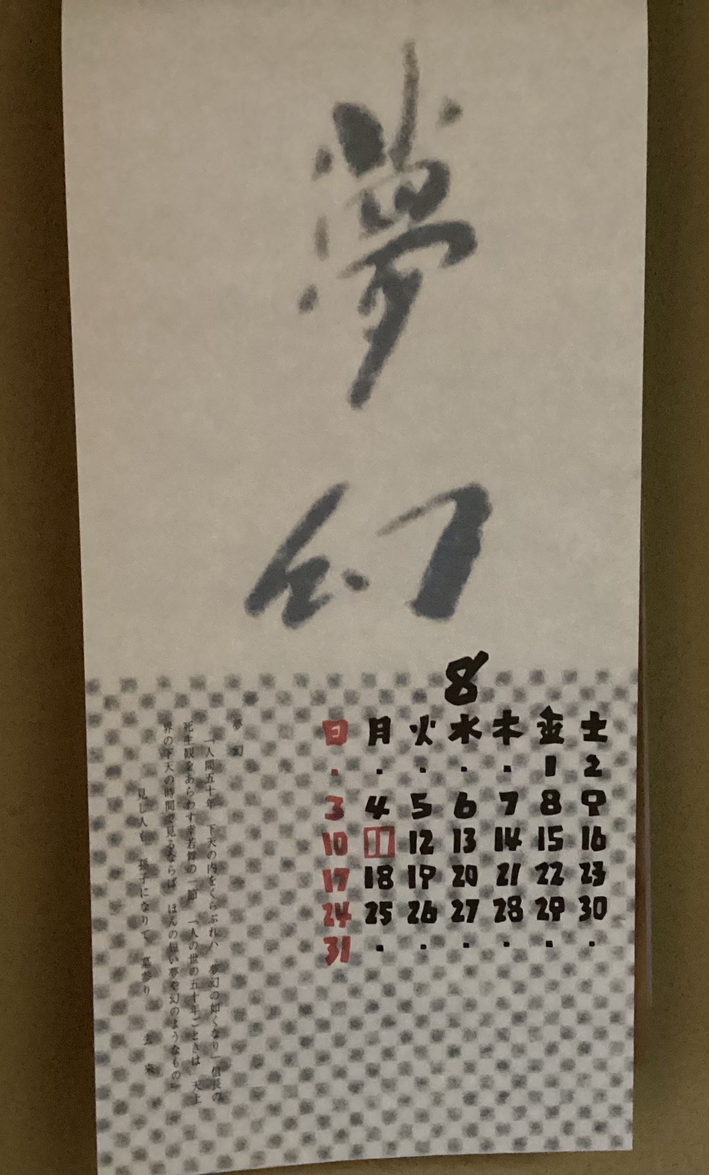 今年の歌会始めの勅題は「夢」勅題に因んだ8月のカレンダーです。