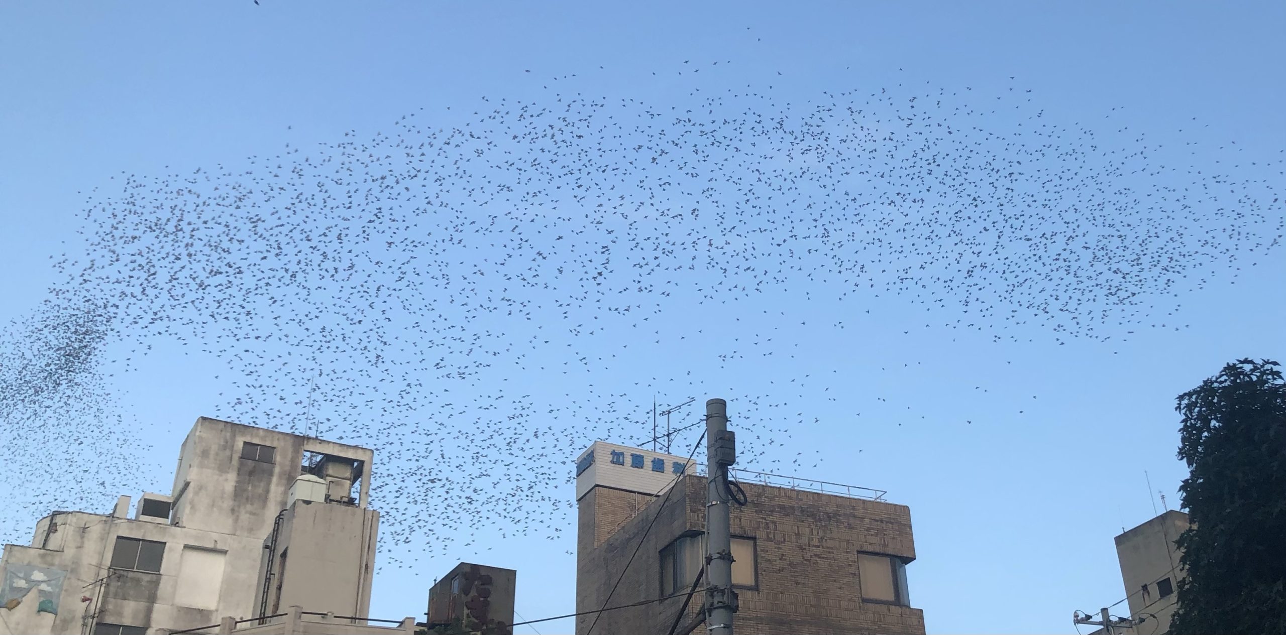 ヒヨ鳥が集団となって海峡を渡って行きます。大型の天敵に襲われないように、集団となるそうです。