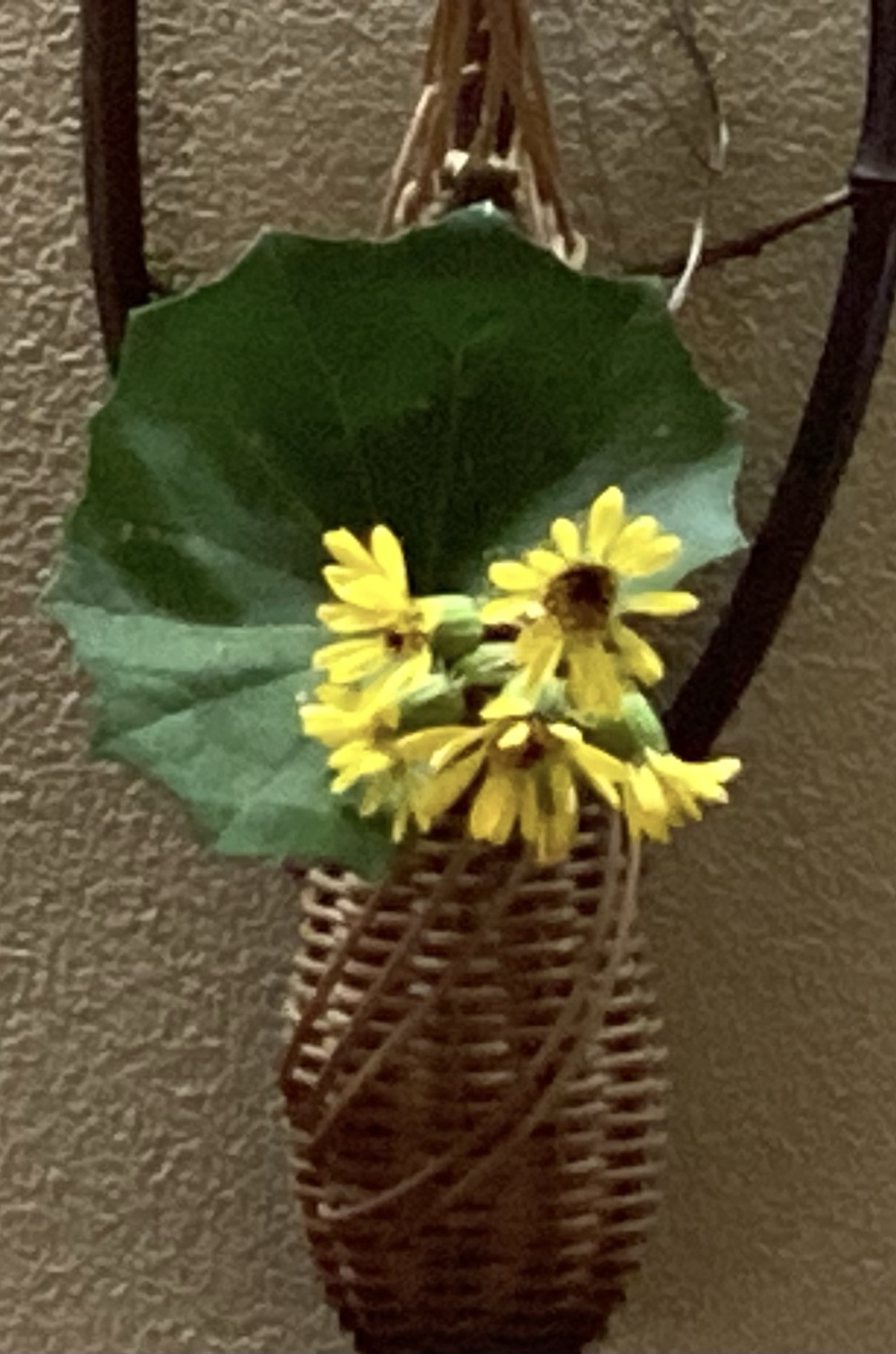 ツワブキの花を生けました。この花を見ると冬を感じます。早いもので今年もあと50日あまりですね。
