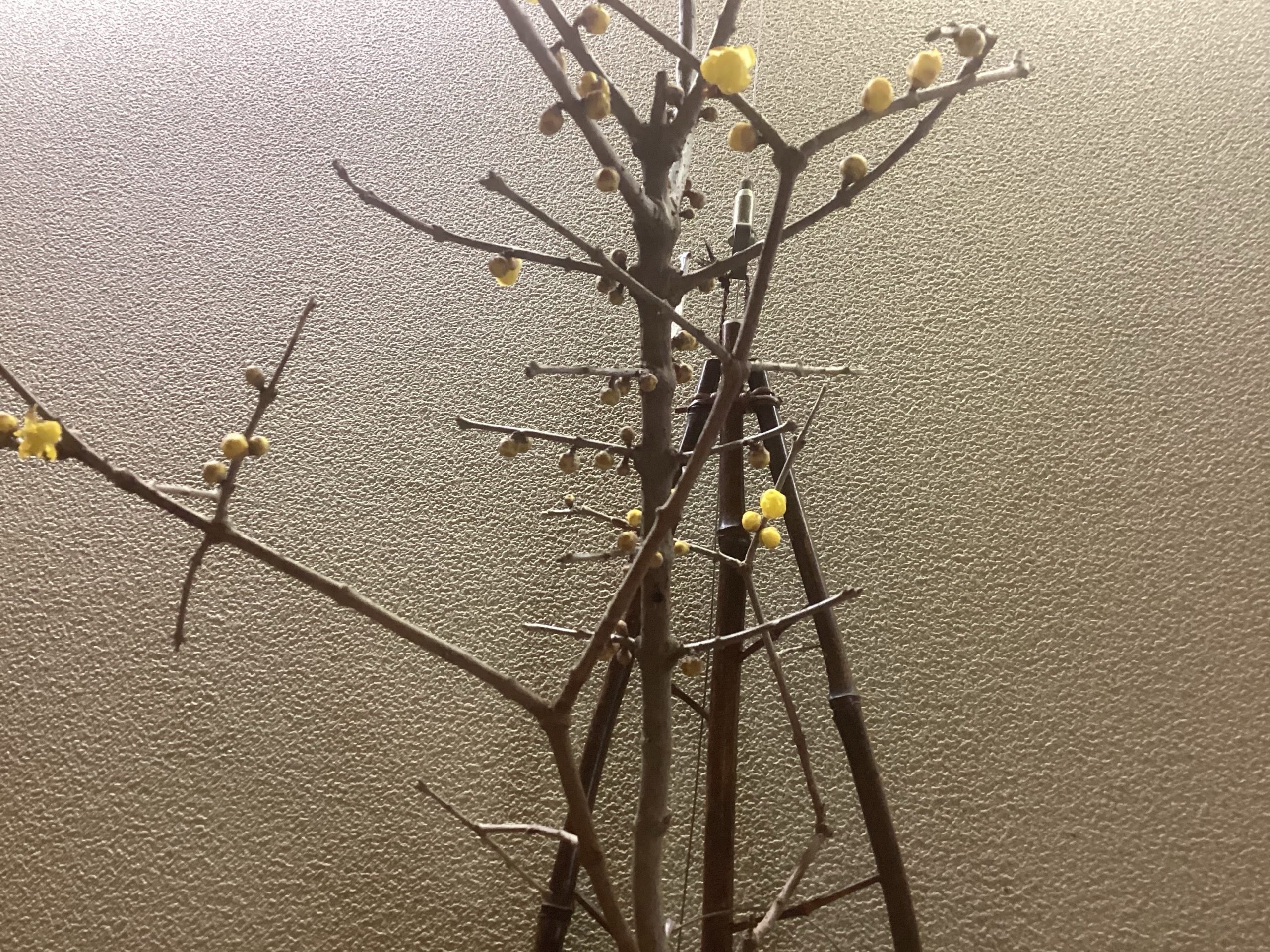 蝋梅の花を生けました。姿かたちも素敵ですが、花の香りも魅力です。