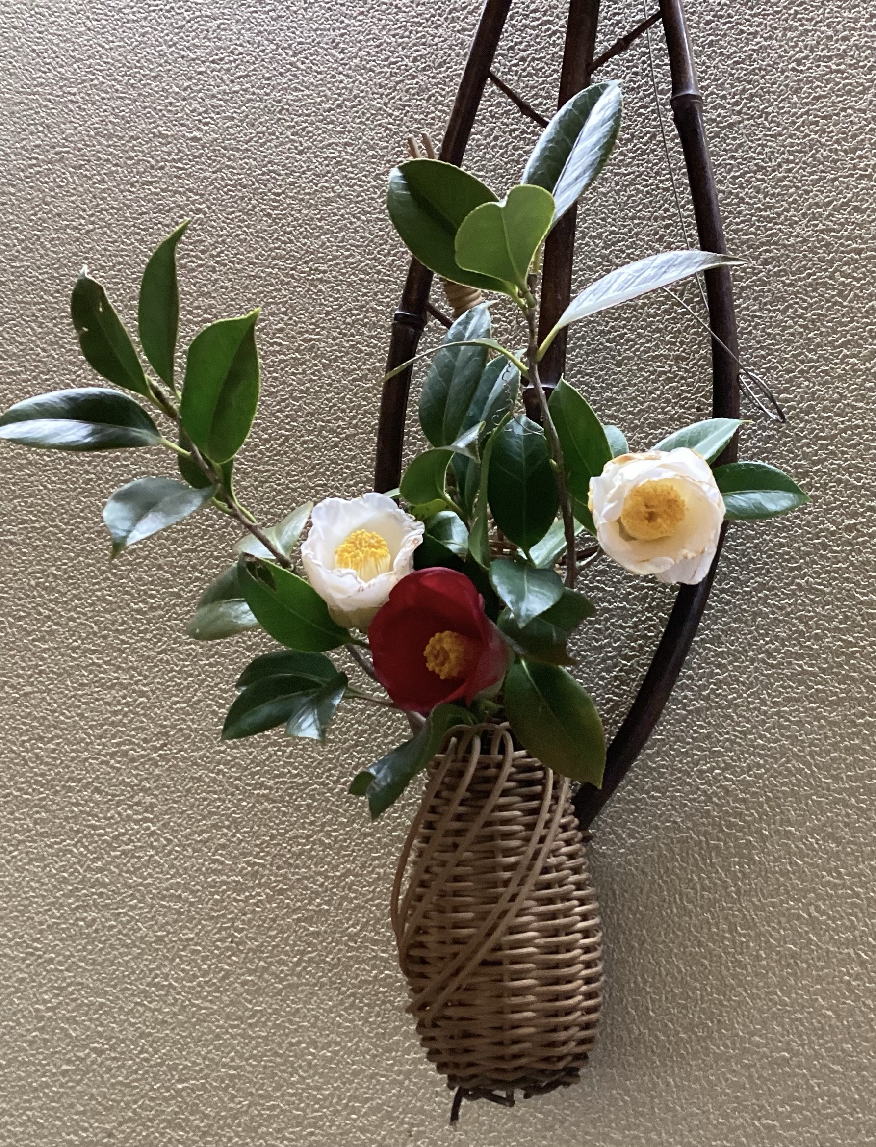 椿を生けました。びっくりする程綺麗ですね。