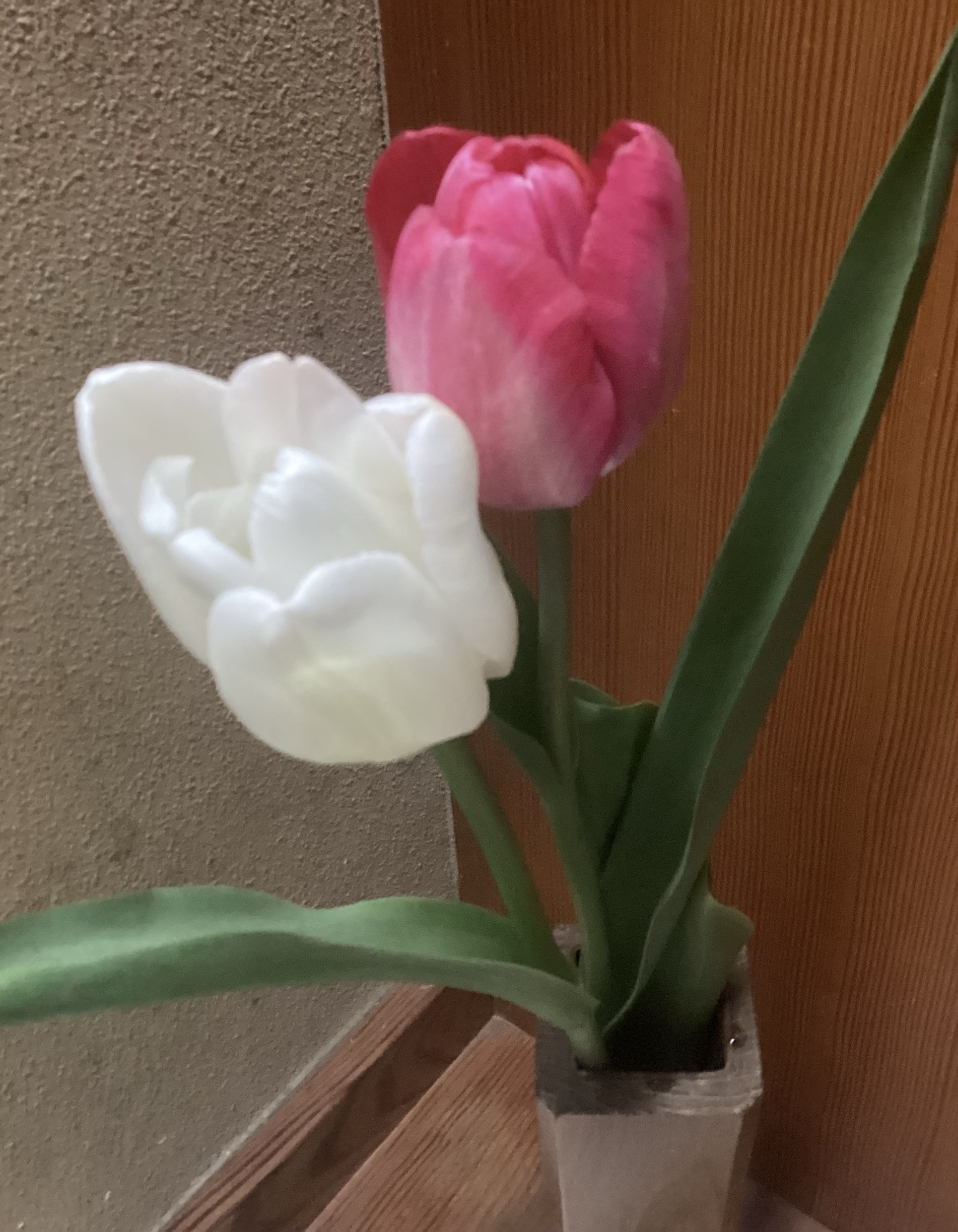 春が待ち遠しい花たちが咲いています。アイリスとチューリップです。