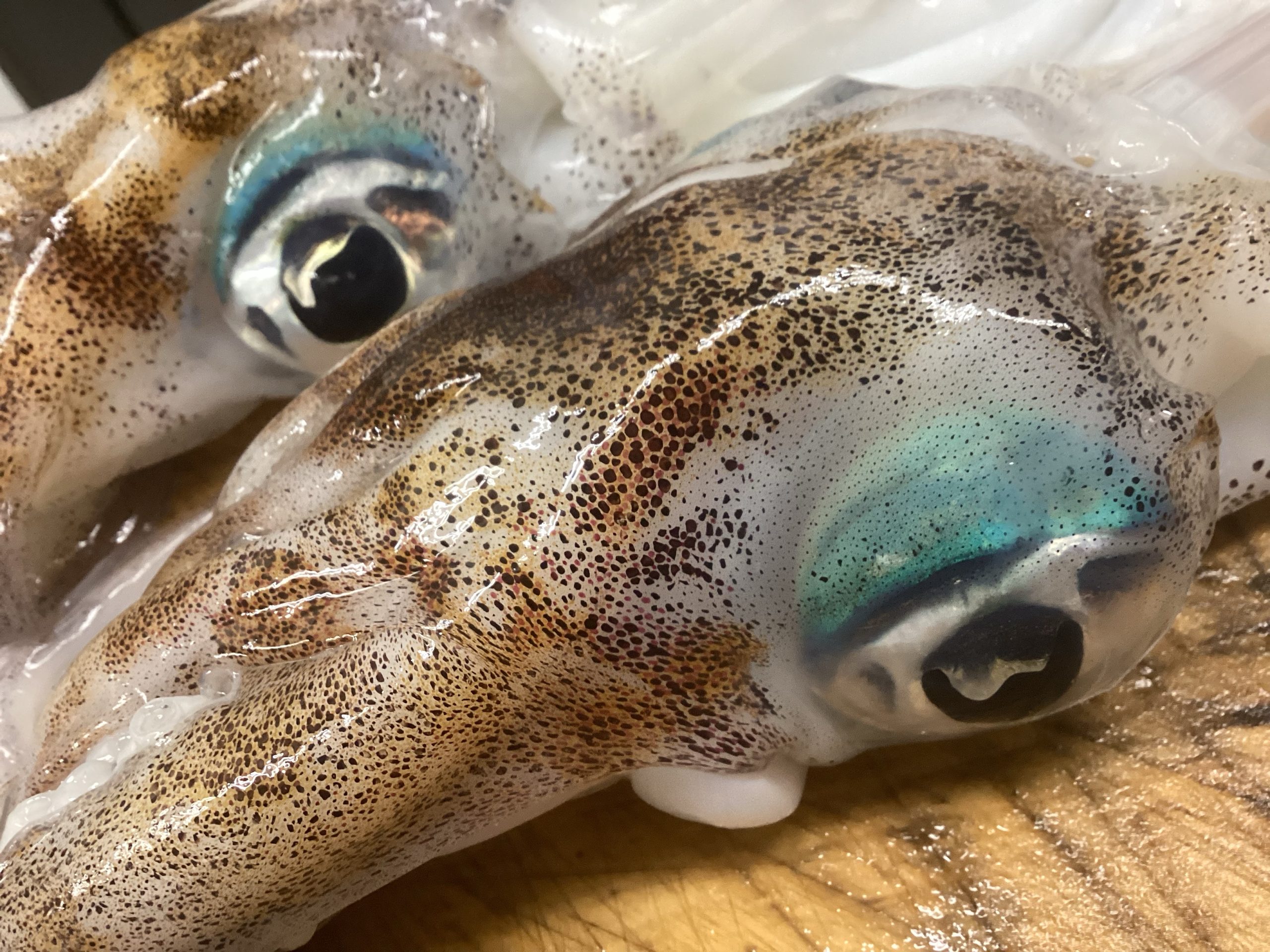 今日仕入れたアオリイカの目です。アイシャドウがオシャレですね。