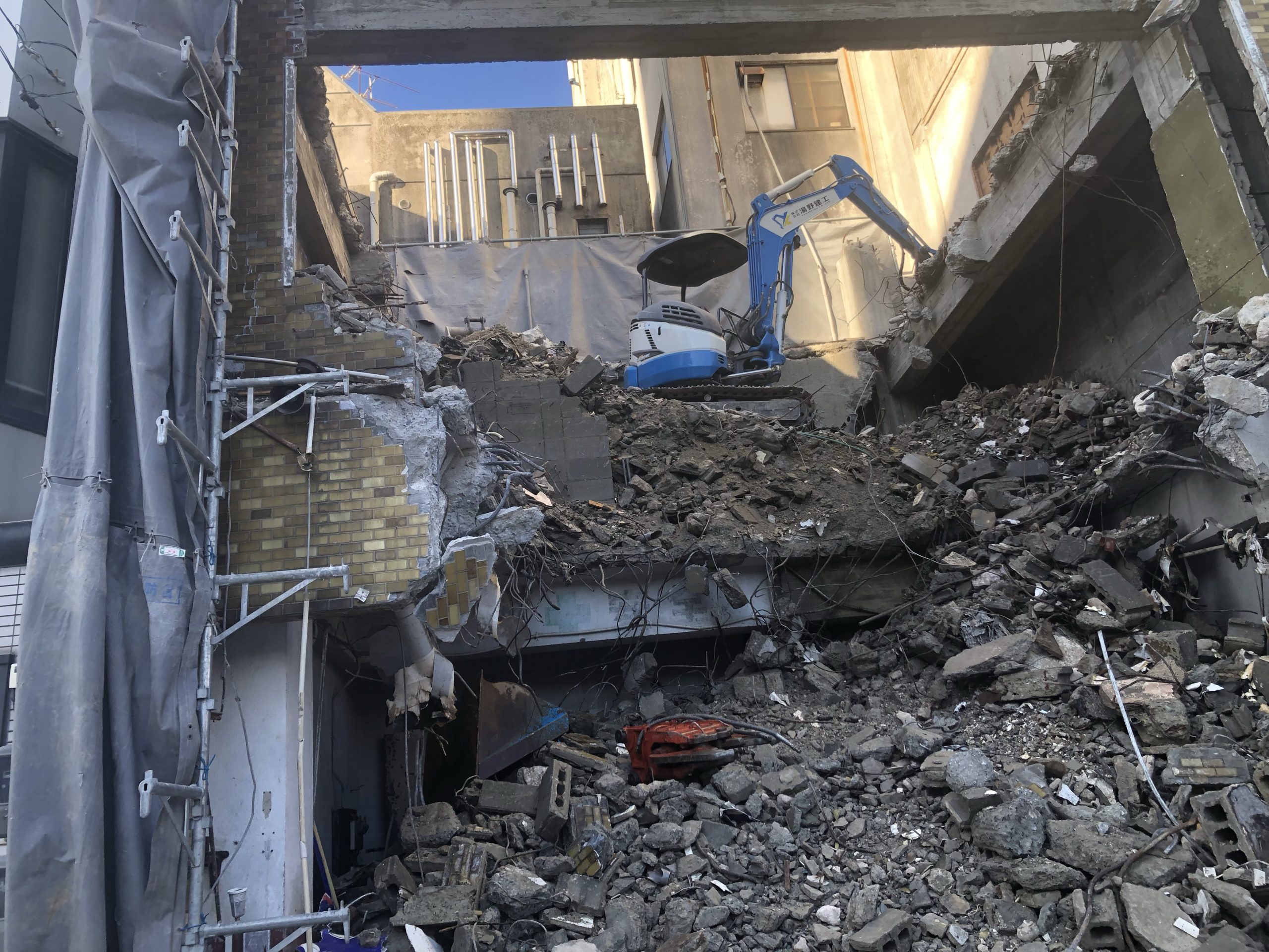 今、お店( 浪花) に隣接しているビルの解体工事を行っています。お昼の時間は工事の騒音が聞こえますが、ご勘弁の程お願い申し上げます。工事終了予定は3月末です。