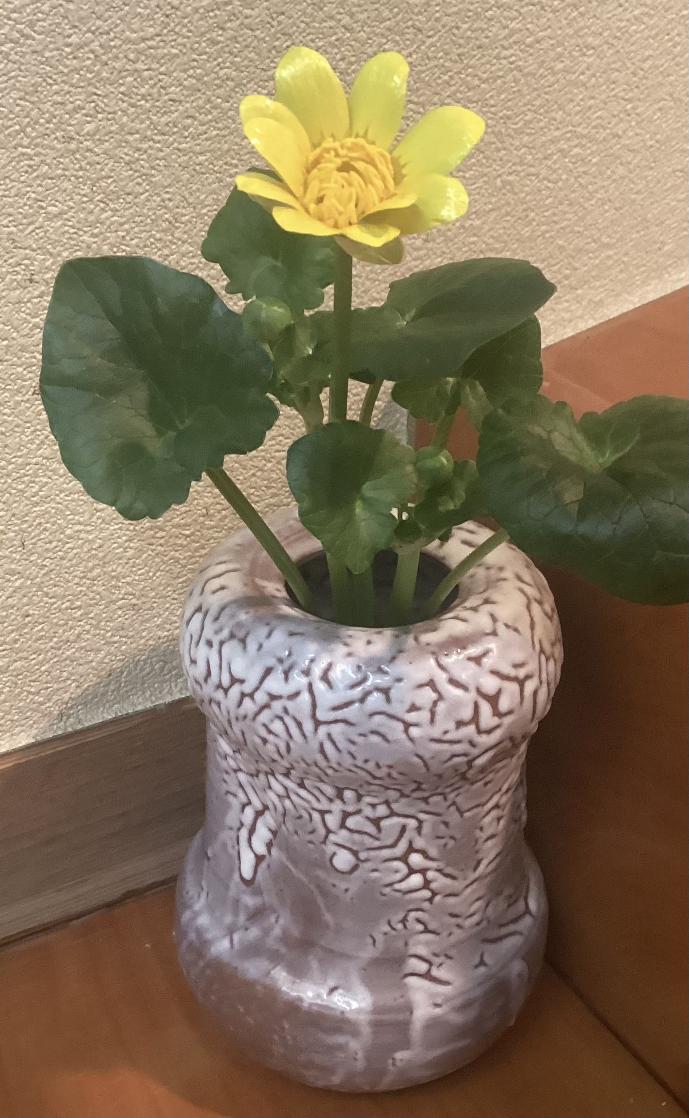 又、珍しいお花をいただきました。「ヒメリュウキンカ」でず。見ていると何となく幸せな気分になります。